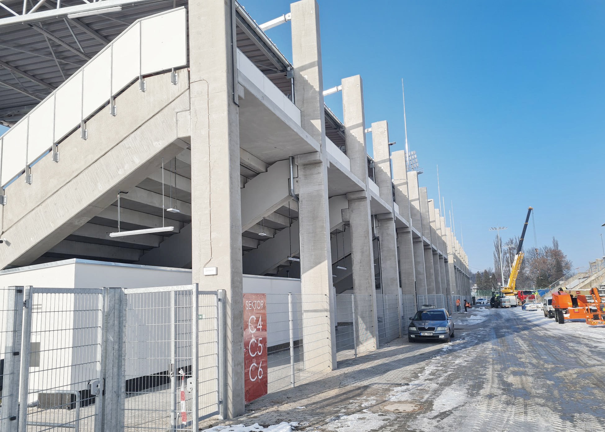 Dodávka a montáž železobetonové konstrukce (nosníky, sloupy), tribun a schodišť pro rozsáhlou rekonstrukci fotbalového stadionu v Pardubicích je u konce a fanoušci, vedení města a klubu FK Pardubice jej tak mohli 1.2.2023 slavnostně otevřít.